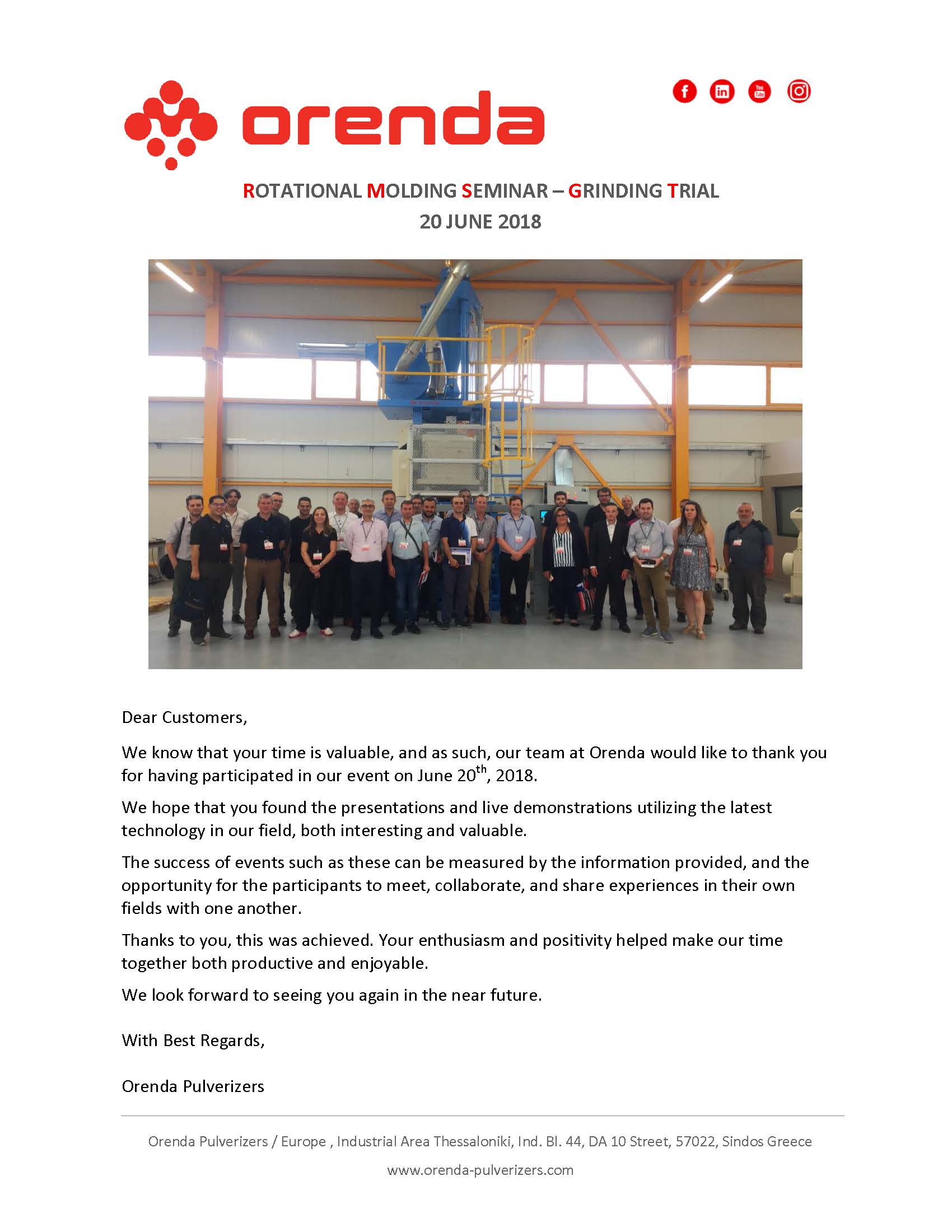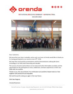 Orenda Europe Rotational Molding Seminar & Grind Trial